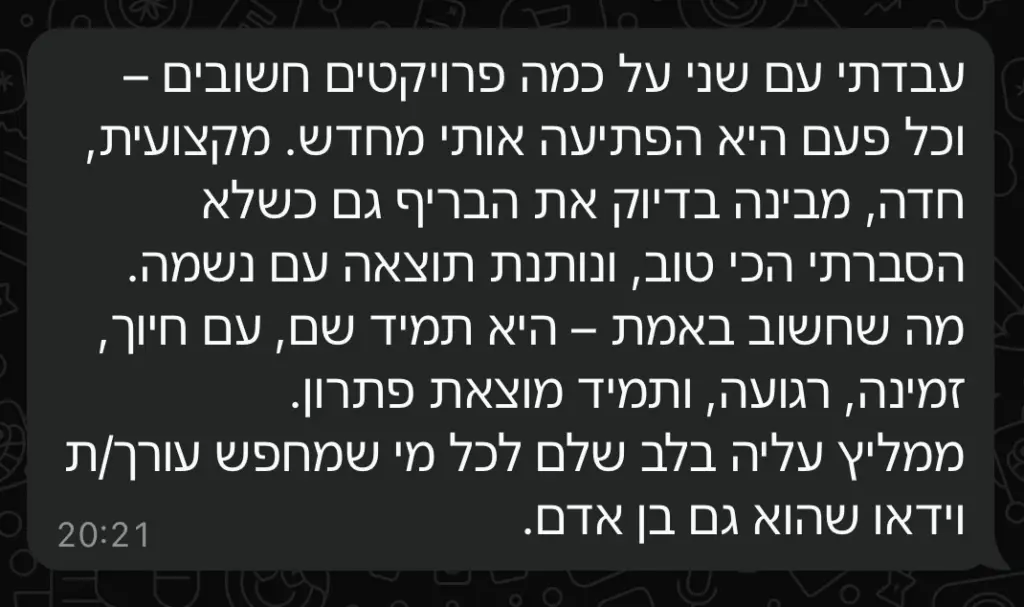 עריכה מוקפדת ויצירתית, שמשלבת את האסטרטגיה מהפגישה,